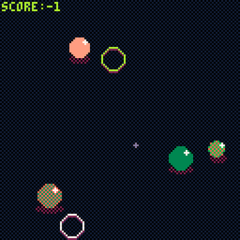 circfill(e.o,e.f,e.e,e.l)fillp()circfill(e.o+e.e/2,e.f-e.e/2,e.e/4,7)else circ(e.o,e.f+1,e.e,2)circ(e.o,e.f,e.e,e.l)end end?"score:"..c-r,1,1